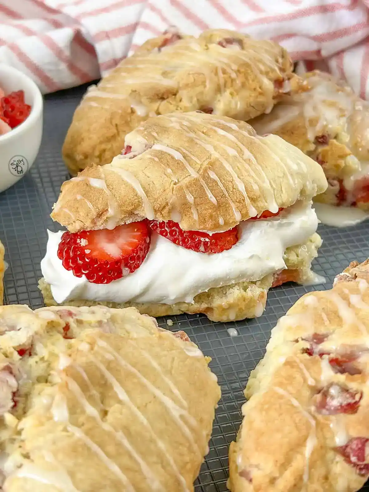 These Air Fryer Strawberry Scones are great for Christmas breakfast or brunch. Serve them warm with some jam, clotted cream, or your favorite tea for a tasty break in your day.