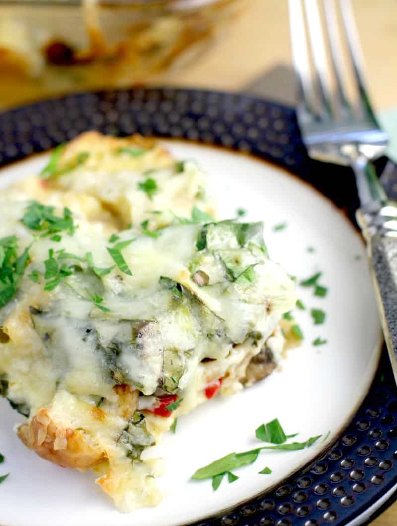 Christmas Croissant Breakfast Casserole is a vegetarian breakfast casserole assembled in advance so all you have to do is bake in the morning.