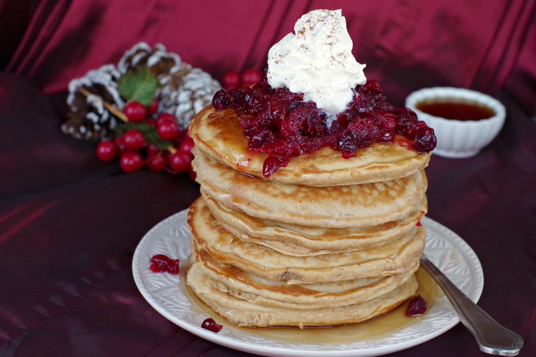 These Gingerbread Christmas Pancakes have butterscotch pudding in the batter and no molasses or cloves for a creamy, mild, fluffy, and incredibly delicious Christmas Pancake, that pairs perfectly with this tangy Cranberry Compote.