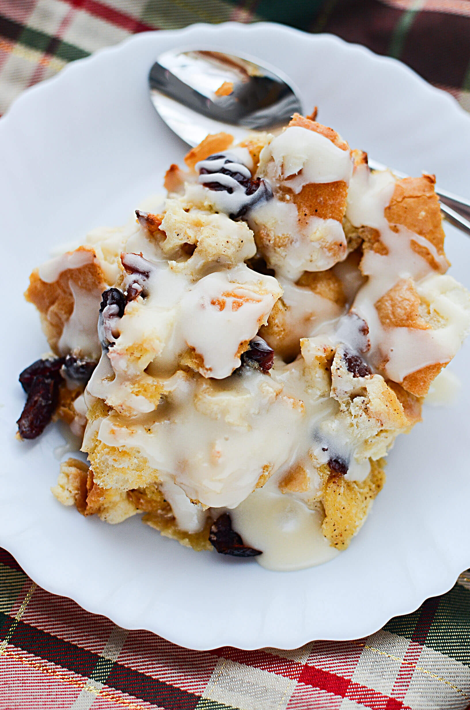 Overnight Eggnog Bread Pudding with Cranberries is tasty, it’s easy, it has all the ingredients a breakfast normally might have, your new Christmas morning favorite.