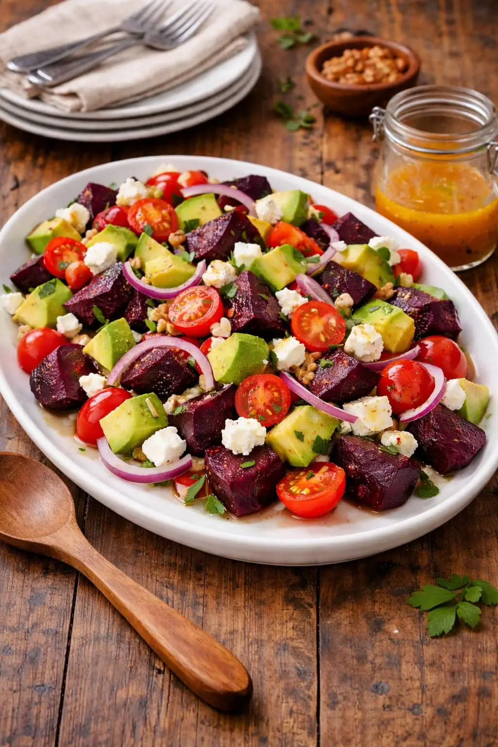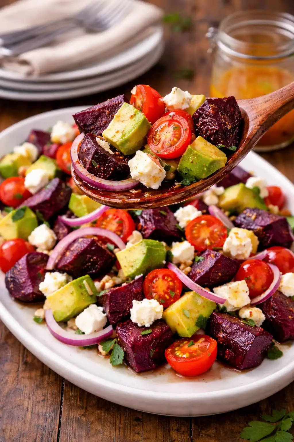 BEET SALAD WITH AVOCADO AND FETA CHEESE